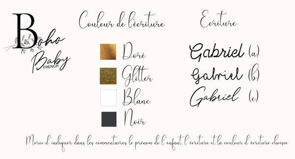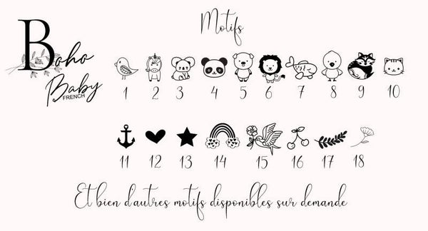 Possibilité de choisir le motif, n'oubliez pas de m'envoyer votre demande de motif et de police d'écriture dans la personnalisation.